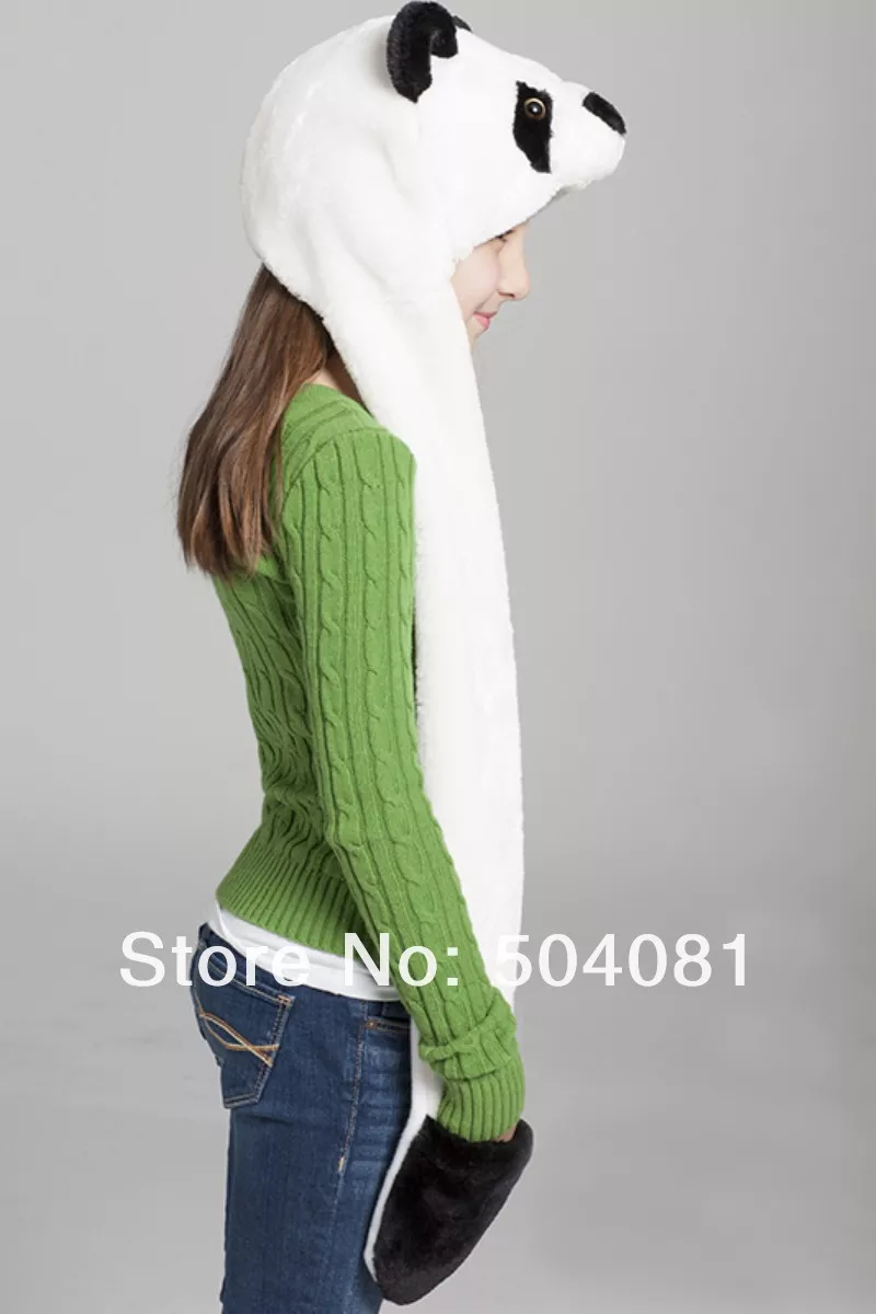 Cosplay de pelúcia dos desenhos animados panda chapéus com as abas de orelha macio macio quente animal chapéu para homens feminino cachecol luvas inverno boné frete grátis